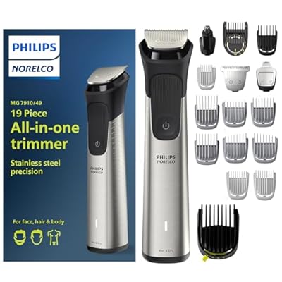 Norelco Philips Multigroom 7000 Series, All-in-One Trimmer, Beard Trimmer and Hair Clipper, 19-Piece Mens Grooming Kit for Beard, Head, Hair, Body, and Face, Soft Pouch, MG791049