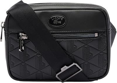 Lacoste Embossed Monogram Shoulder Bag, Black, One Size